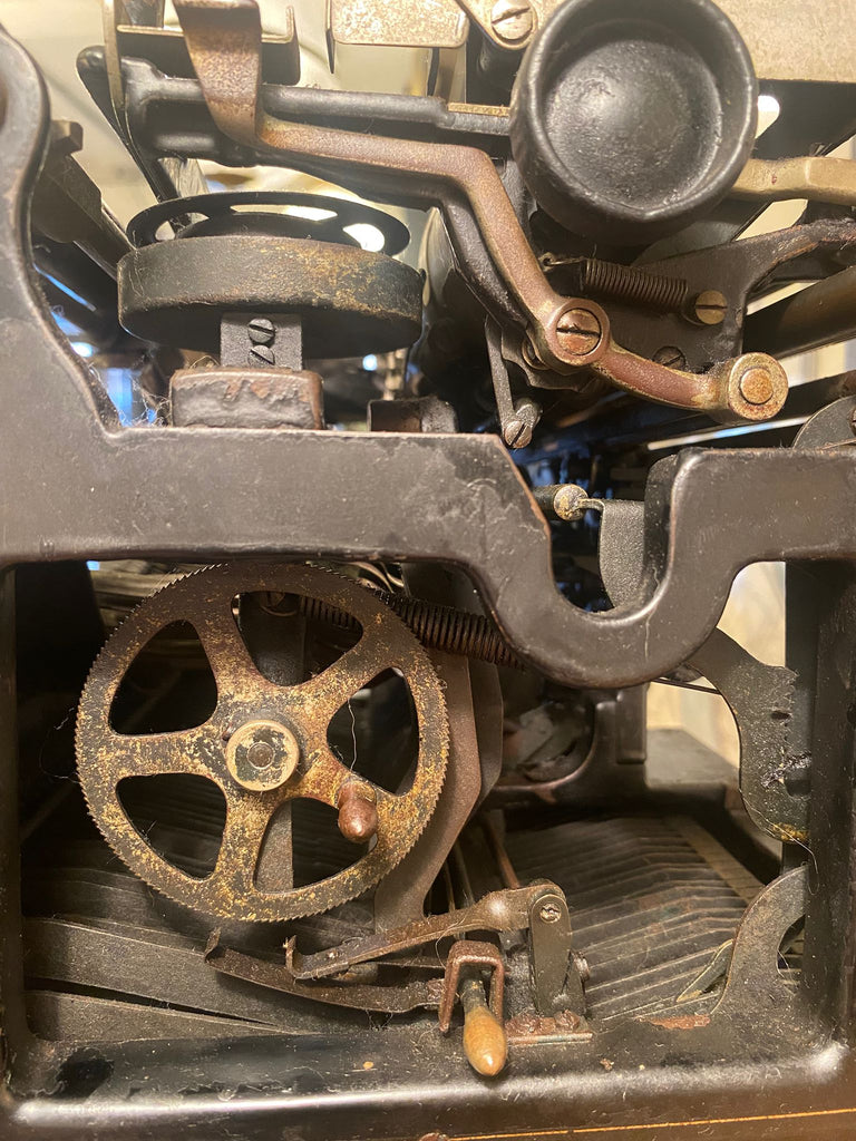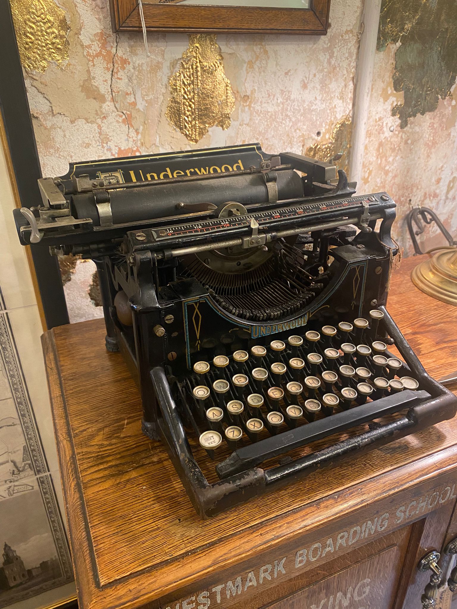 This is an authentic Underwood piece with glass top keys, black enamel finish with gilt detailing.