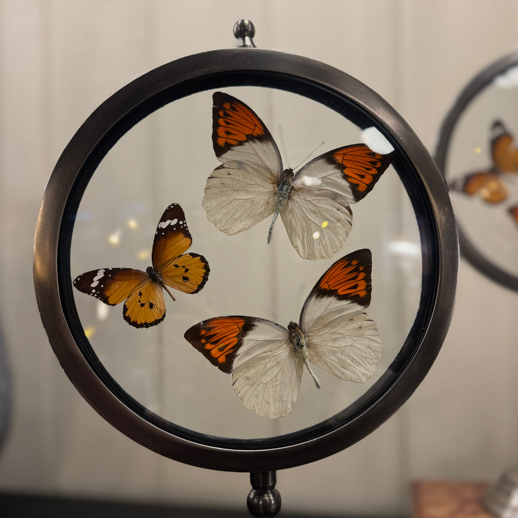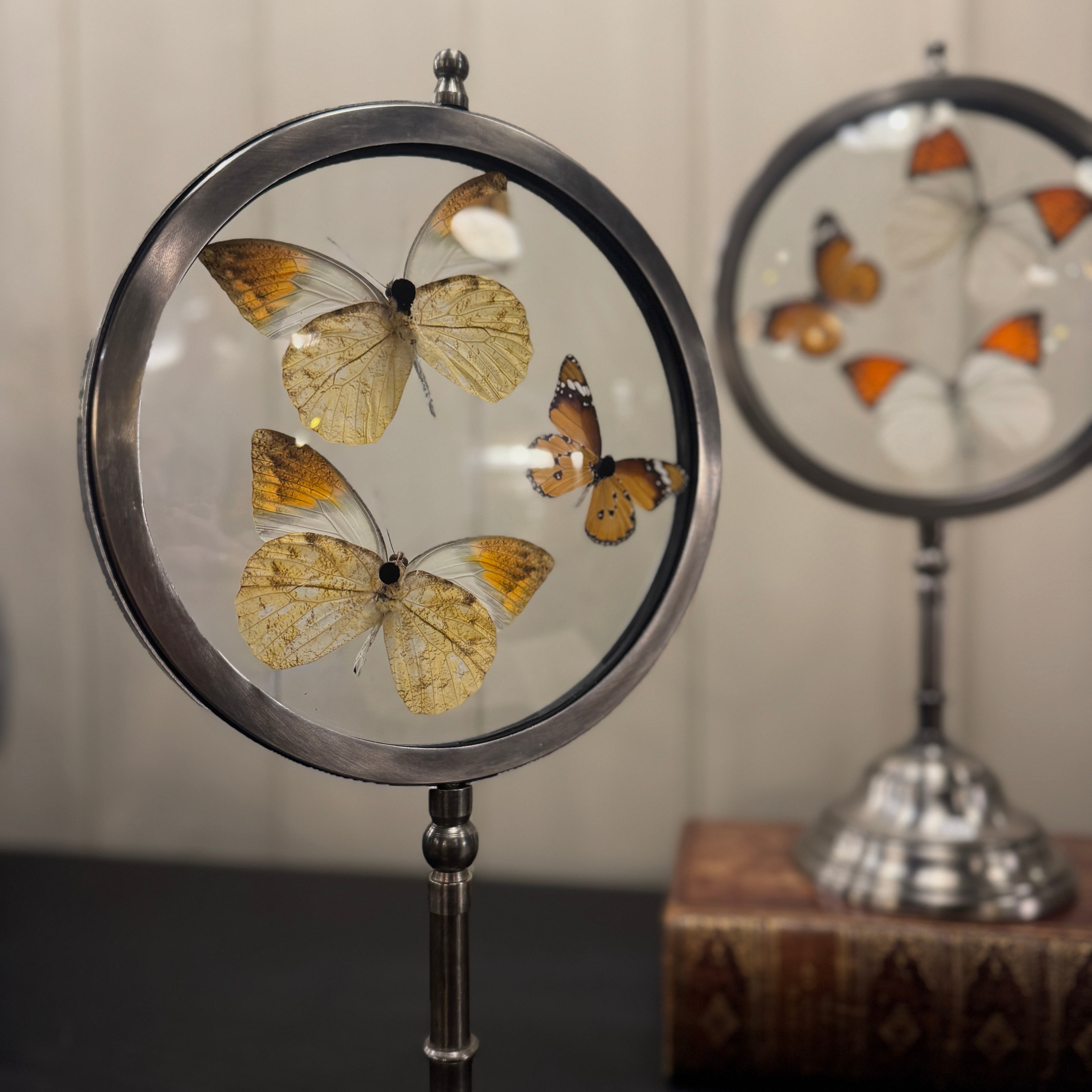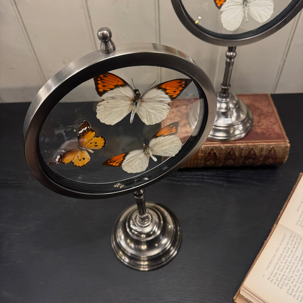 Add a touch of vibrancy to your home decor with this Decorative Butterfly Looking Glass. The gun metal frame gives an industrial vintage look, and the colourful butterflies are eye-catching and stylish, a perfect complement to your shelves, console, or mantlepiece.