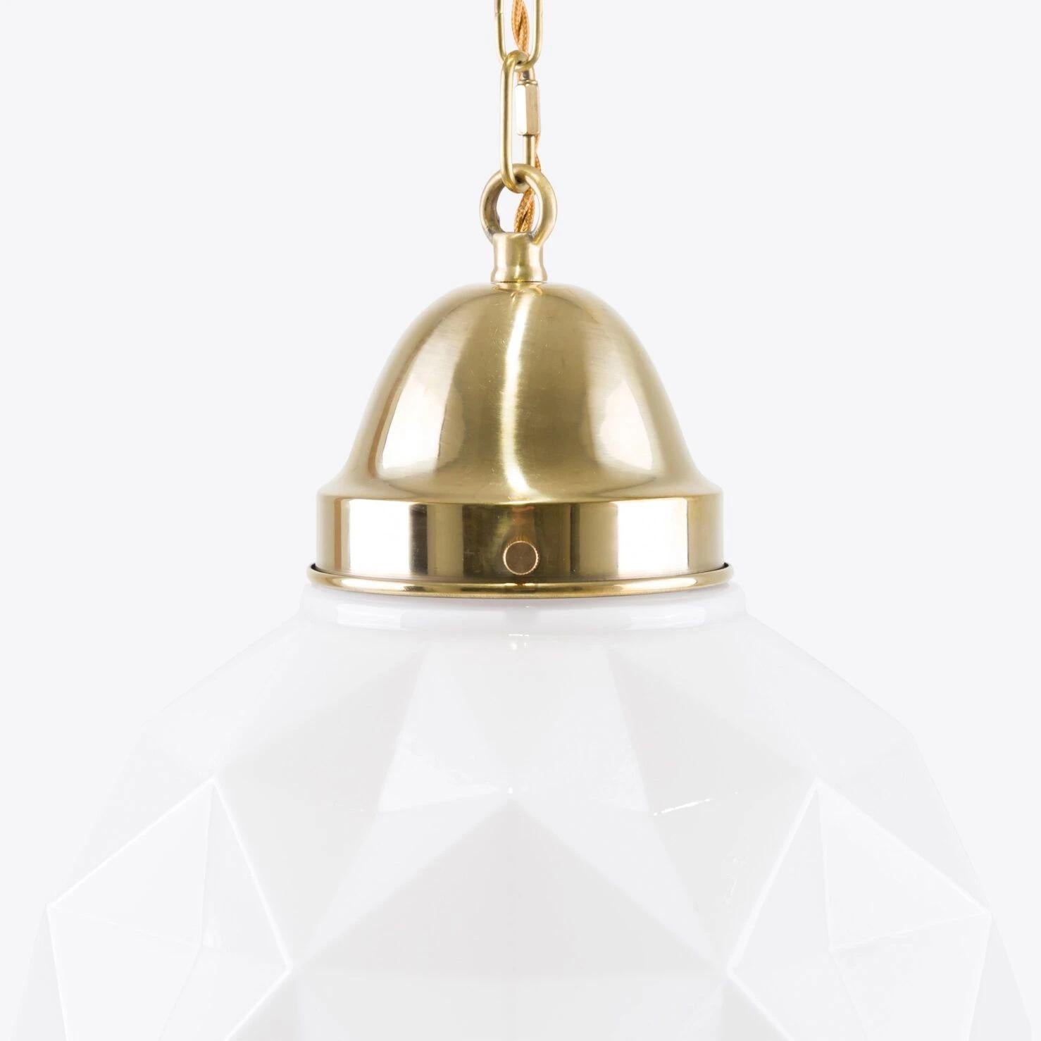 This gorgeous geometric pendant creates a stunning warm glow. With odes towards deco styling, this brings a touch of glamour to any home.